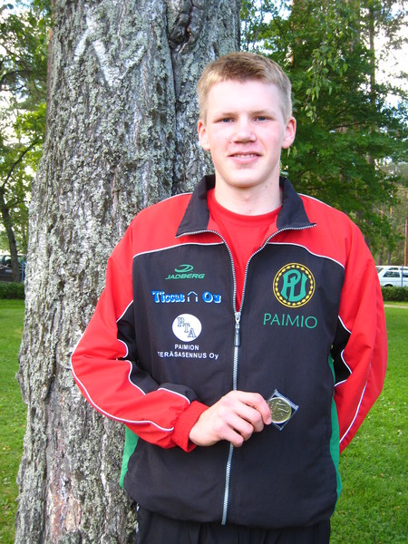 Kauhavalta 14-15 –vuotiaiden ja Kuopiosta 16-17-vuotiaiden kisoista tuotiin tuliaisina SM-mitaleja ja hyviä sijoituksia: Matti Mäkitalo M16-sarjan kolmiloikasta hopeaa omalla ennätystuloksella, Anton Ahvenlampi P14-sarjan 800 m hopeaa, Oula Nurmio M17-sarjan 300 m pronssia (kuvia) Paimion Urheilijoiden vaatimaton Matti Mäkitalo sai ansaitsemansa huomion hypättyään sunnuntaina 16-vuotiaiden kolmiloikassa upean ennätyksensä 13,60 viimeisellä hyppykierroksella vastaten samalla seuran kirkkaimmasta, hopeisesta, mitalista Kuopiossa käydyissä 16-17-vuotiaiden yleisurheilun SM-kisoissa. Ari Haapasen valmentama Mäkitalo on kahtena edellisenä vuotena ollut mukana tuomassa SM-mitaleja hyppylajien joukkuekilpailuista yhdessä Markus Lassilan kanssa. Seuran ”timantti” Oula Nurmio (ks. kuvalinkissä vas.) on Jämsänkosken pikajuoksukarnevaaleista lähtien kärsinyt nivusvaivoista, mutta pystyi sentään lauantaina venymään SM-pronssille paraatilajissaan 17-vuotiaiden 300 metrin sileällä (aika 35,55, oma ennätys 34,79 on viime SM-kisoista). Satasella hän joutui nyt tyytymään 4. sijaan (aika 11,24, oma ennätys 11,03). Nurmio on aiemmista kolmista SM-kisoistaan ottanut aina kaksi mitalia. Tänä vuonna hän osallistui myös Suomen edustajana Euroopan nuorten olympiafestivaalin 200 metrille sekä pikaviestiin. Nurmiota valmentaa isänsä Pekka, äiti Katriina puolestaan tuntee parhaiten urheilijan ravinnepuolen tärkeyden. Matti Mäkitalo ei ehtinyt juurikaan tutustua Kuopion nähtävyyksiin, sillä hyppyspesialistina hän urakoi myös korkeuden sekä pituushypyn karsinta- ja loppukilpailuineen. Pituudessa hän oli seitsemäs tuloksella 605 (oe 627) ja korkeudessa 8. (tulos 175, oe 178). Matti on veljensä Mikon tavoin millintarkka ponnistaja, velimies ponnisti ehkä tarkimmin v. 2003 voittaessaan 14-vuotiaiden mäkihypyn Hopeasompamestaruuden Jyväskylän Laajavuoressa. Savolaisen päivystyspoliklinikan hitauteen yömyöhällä joutui sen sijaan tutustumaan SM-mitaleiden makuun kaksissa kisoissa jo päässyt 16-vuotias Marianne Paakkinen, joka sortui perjantain myötätuulisessa kiekonheitossa yliyrittämiseen, heittoihinsa hermostuneena muljautti nilkkansa ja joutui tyytymään 4. sijaan (tulos 33,92, oma ennätys 36,18/ 1 kg). Nilkka vahvasti teipattuna hän pyörähti lauantaina vaatimattomalla tuloksella kuulantyöntöringissä, mutta moukarinheitossa pari tuntia myöhemmin irtosi sinnikkyydellä sentään seuralle yksi Kalevan Malja –piste kuudennesta sijasta (tulos 38,13, oe 40,49/ 4 kg). Paakkisella on kaksi henkilökohtaista SM-mitalia kiekosta sekä kolme Annamari Penttilän kanssa heitettyä joukkuemitalia kiekosta ja moukarista. Paakkisen lupaavalta näyttänyttä kautta varjostivat talven selkäongelmat sekä joutuminen maaliskuussa aitajuoksuharjoitteessa sattuneesta polvivammasta leikkaukseen parhaaseen harjoitteluaikaan. Hän onkin nuoreen ikäänsä (16) nähden porukan epäonnisimpia tapaturmien suhteen, myös kausia 2001, 2002 ja 2006 pilasivat tapaturmat. Paakkista valmentaa pääosin Pekka Maisila Turusta, moukarinheittoa opastaa Raimo Laiholahti Kaarinasta. Kuopion kisoihin osallistuivat myös Antti-Pekka Niinistö (M17 800 m) ja Annamari Penttilä (N16 kiekko ja keihäs). Hekin olivat jo kolmannen kerran SM-tasolla edustamassa. Niinistö olisi pm-kisojen ennätysajallaan päässyt mukaan loppukilpailuun, mutta jostakin syystä juoksu ei nyt kulkenut samaan malliin. Annamari Penttilä heitti keihästä samassa kisassa N17-sarjan tämänvuotisen MM-kakkosen Carita Hinkan kanssa. Hinkka heitti kisassa uuden N16-17 –sarjojen suomenennätyksen 54,37 menetettyään sen aiemmin tänä kesänä Laitilan Jyskeen Sini Kiiskelle. Vähäisestä kiekon lajiharjoittelusta huolimatta Penttilä heitti lähelle omaa ennätystään. Hän on seuran sinnikkäitä puurtajia, opetteli esim. viime kaudella kahdessa viikossa moukarinheiton alkeet SM-joukkuekisaa varten, hankki ensin joukkuekisaan osallistumista varten tarvittavan 3 kilon moukarin B-rajan ja ehti heittää vielä pm-kisoissa ja olikin sitten jo tärkeänä lenkkinä tuomassa SM-joukkuehopeaa Turun kisoista. Esimerkillinen nuori nainen!