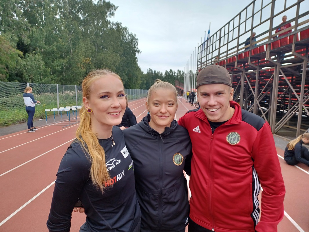 Yleisurheilun 19- ja 22-vuotiaiden Suomen mestaruuksista kilpailtiin 26. – 28.8.2022 Vaasassa. Pilke Kössi heitti neljänneksi 22-vuotiaiden keihäänheitossa tuloksella 44.53. Emma Tainio juoksi neljänneksi 19-vuotiaiden 100 metrillä ajalla 12.33. Emma juoksi alkuerissä 12.50 ja välierissä 12.12. Emma osallistui myös 200 metrille ollen viides ajalla 25.11 (alkuerässä 25.10). Konsta Gröndahl oli yhdeksäs 100 m:n ja 200 m:n juoksuissa. Yhdeksäs sija tarkoittaa, että Konsta oli ensimmäinen karsiutuja finaaleista. Konstan aika 100 metrillä oli 11.41 ja 200 metrillä 22.48 (oe). Pilke kävi kokeilemassa myös kuulantyöntöä ollen 13. tuloksella 9.17. |