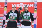 Niko Kytösaho ja Antti Aalto palkintopallilla Lahden maailmancupissa